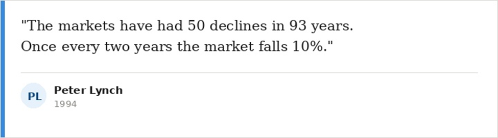 Back in 1994 Peter Lynch gave a great speech for the National Press Club where he talked about how frequent market corrections happen and how to look at them.