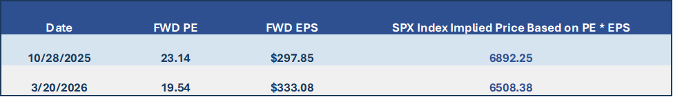 Compare That to October when the Forward PE was over 23 and Forward EPS was lower but doing the math of PE * EPS, the S&P 500 Index was higher.